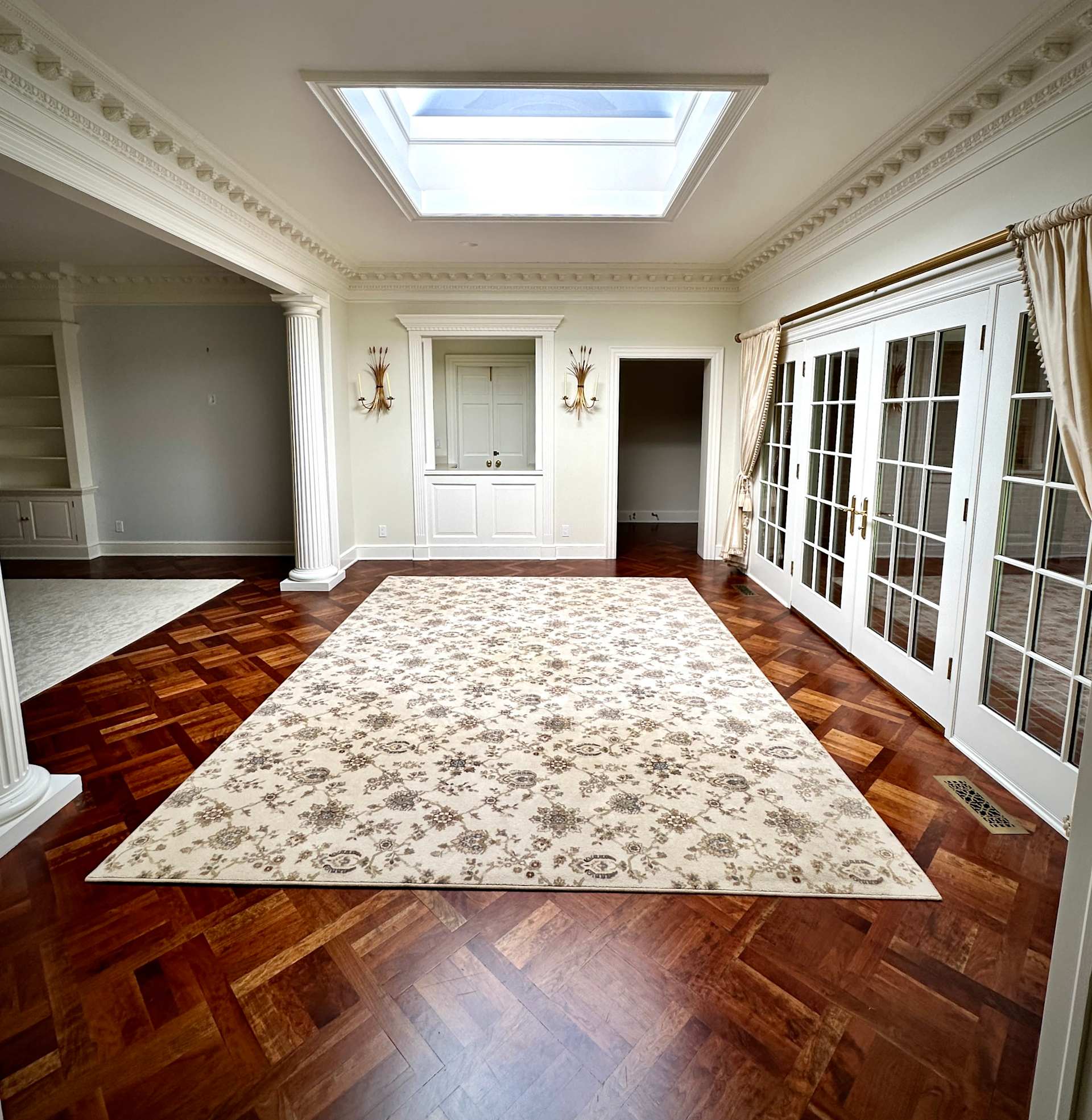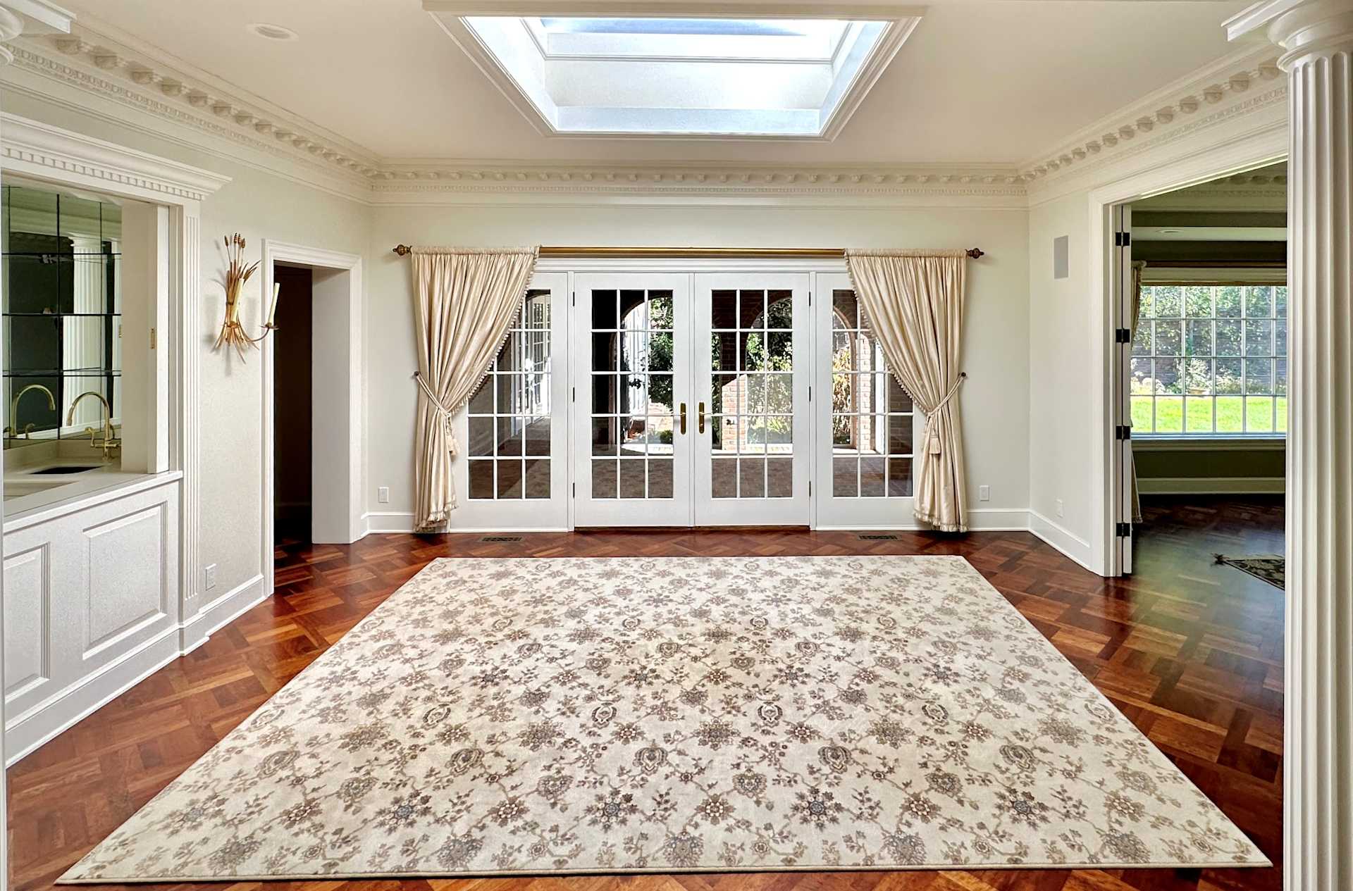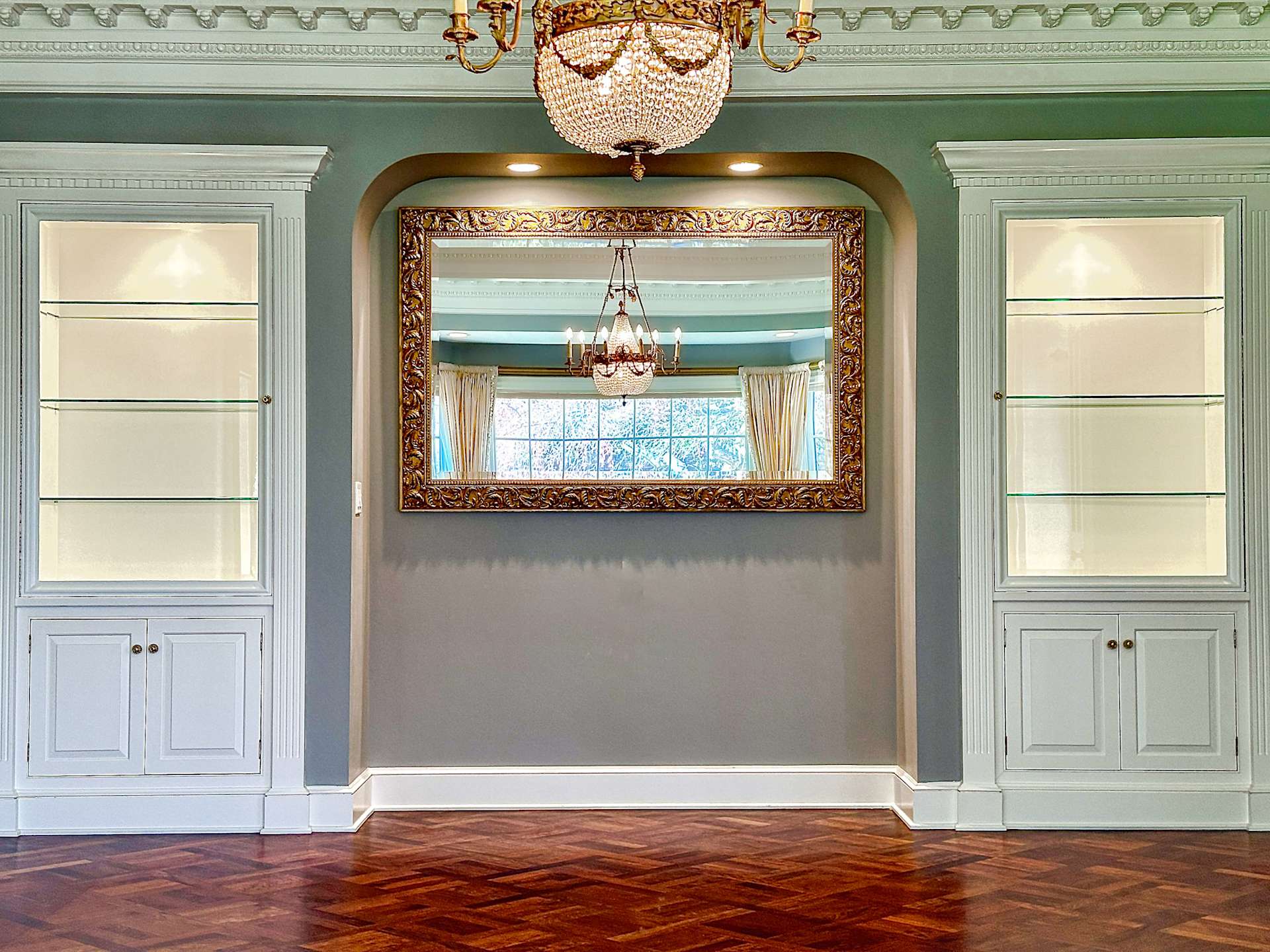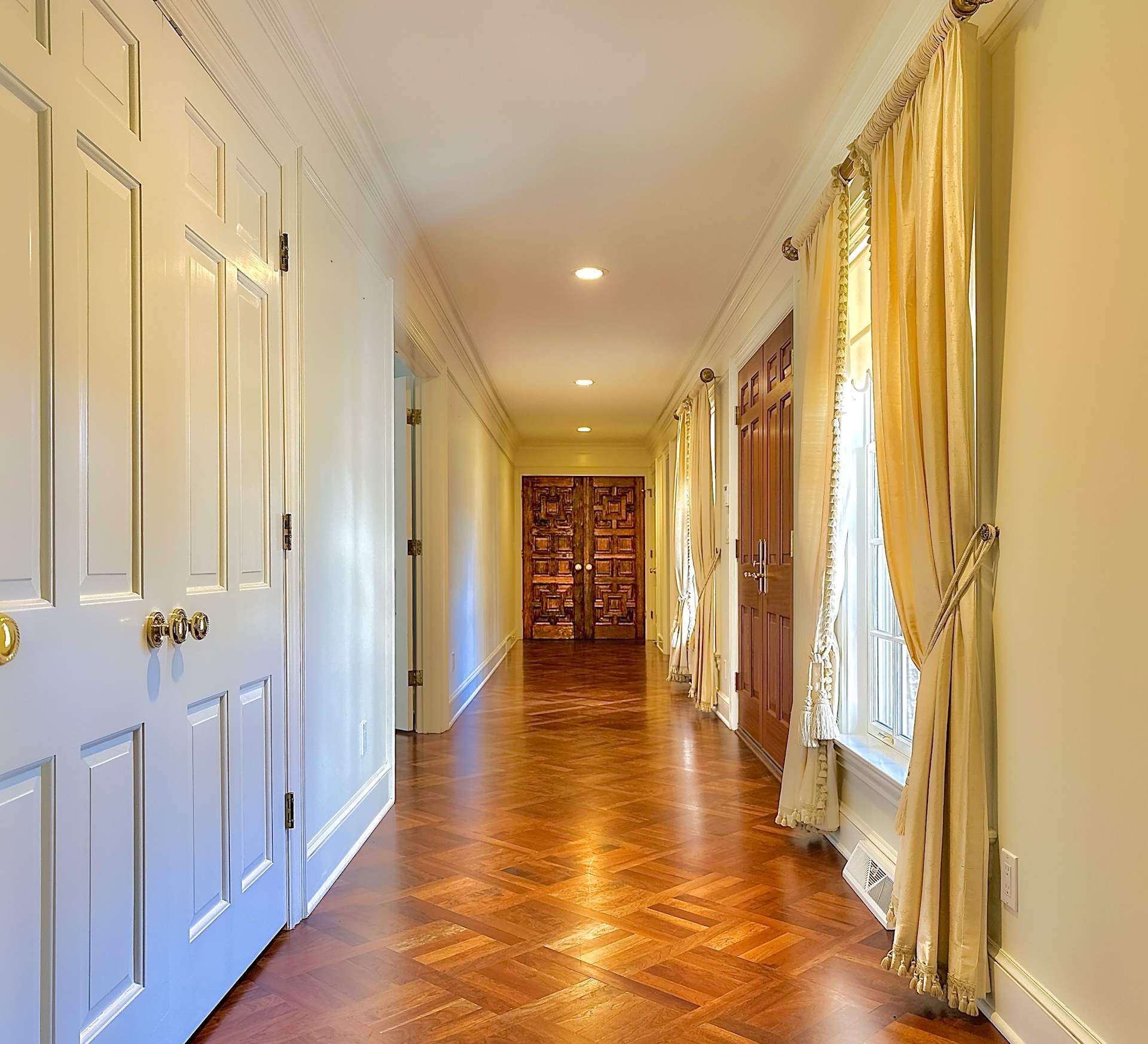This distinctive detail commands attention in the expansive front hallway located just beyond the front door. The Cherry parquet floors lend an air of sophistication, setting the stage for the grandeur that awaits within.