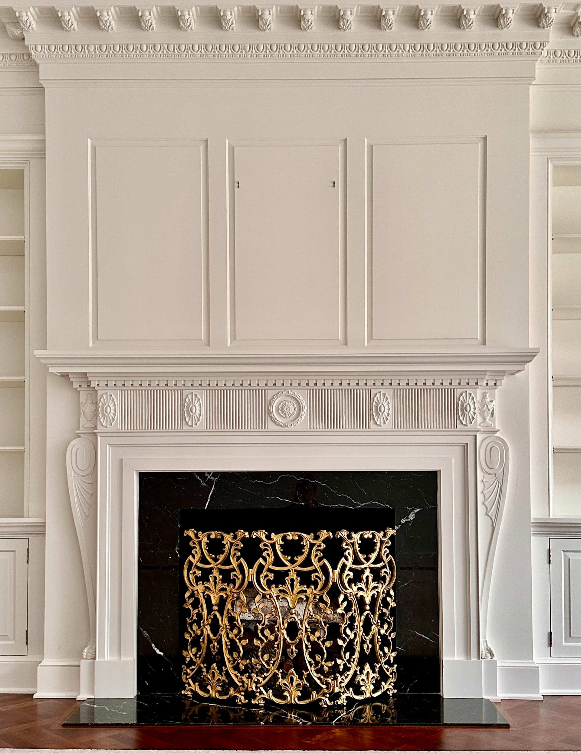 Adjacent to this welcoming entryway is the formal great room, featuring an impressive fireplace and a connected parlor. The space exudes an aura of nostalgia, inviting visions of grand gatherings and lavish parties that undoubtedly unfolded within these walls. As I approach the butler's bar on the western wall, I can almost sense the echoes of celebrations from times gone by, adding a touch of historic charm to the atmosphere.