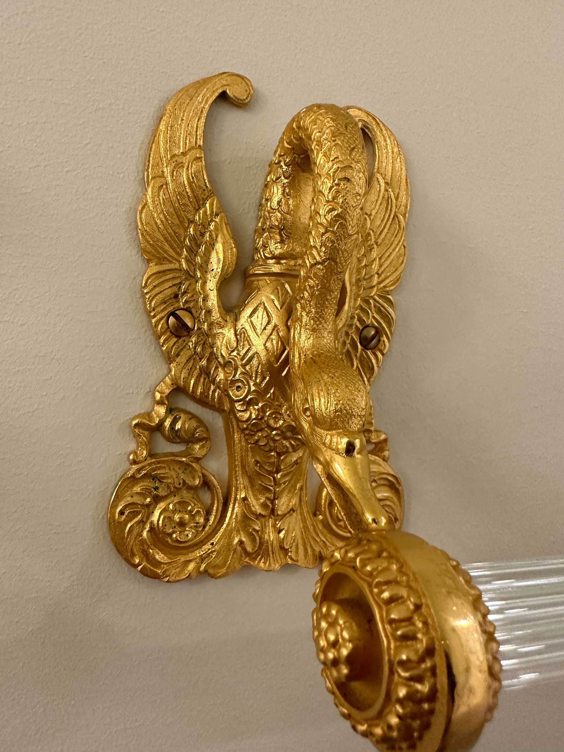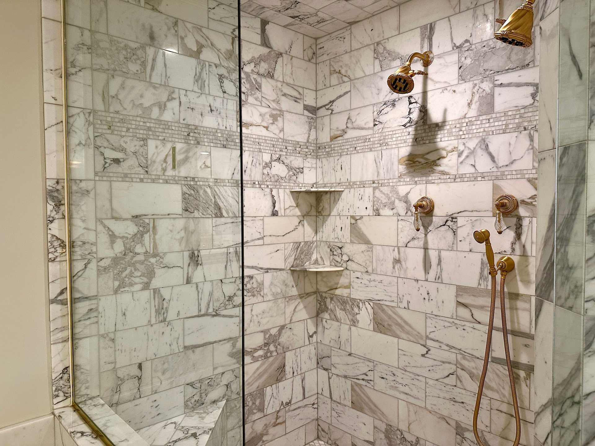 Upon entering, one is immediately greeted by the ensuite bathroom—a space larger than some Manhattan apartments. This opulent retreat spans an impressive 278 square feet, adorned with luxurious marble surfaces and resplendent golden fixtures, setting a standard of lavish living.